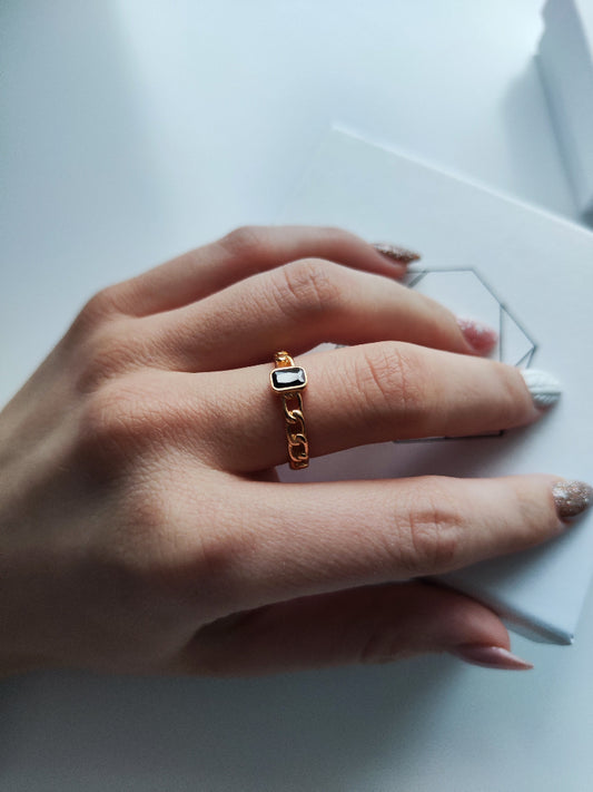Golden Chain Ring Black CZ